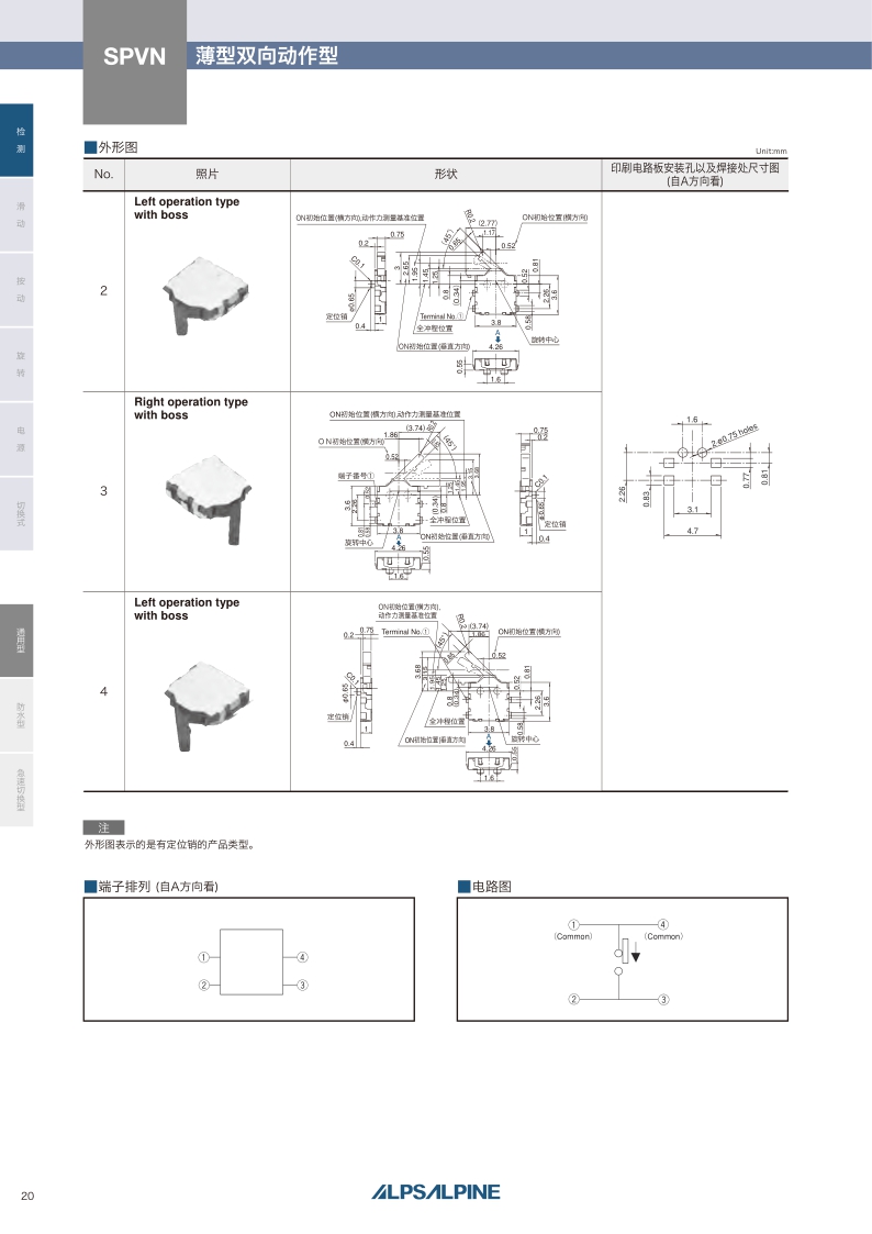 SPVN210106 照片 1 1 For PC board (Reflow) 0.35N max. Standard Left 3.6×3.8×1.0mm