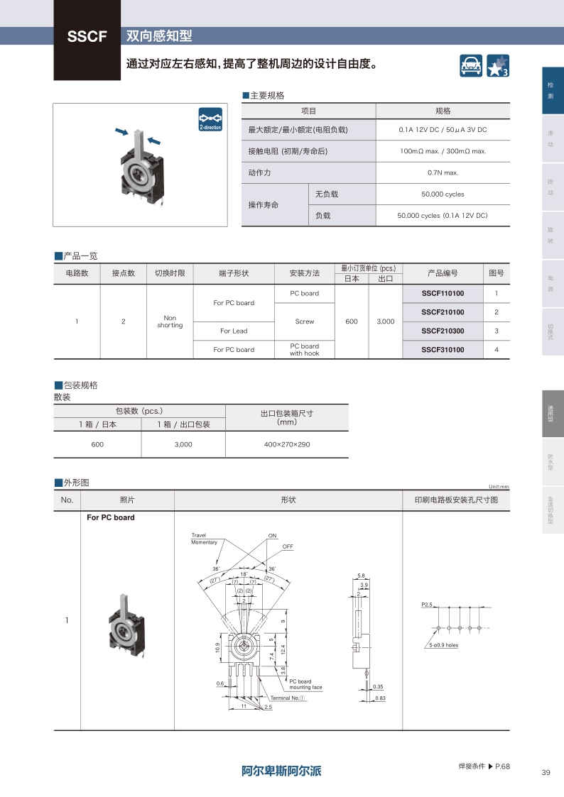 采購:SSCF系列——ALPS檢測開關(guān)