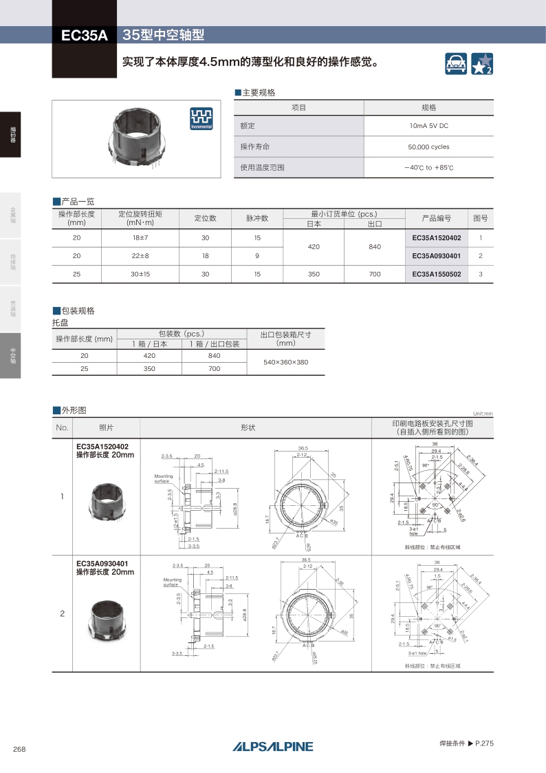 采購:EC35A系列——ALPS中空軸編碼器