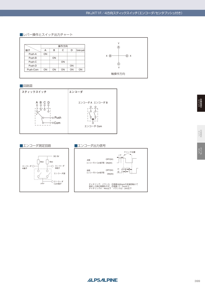 4方向棒式開關(guān)(附帶編碼器/中央按鈕功能)RKJXT1F系列型號:RKJXT1F42001