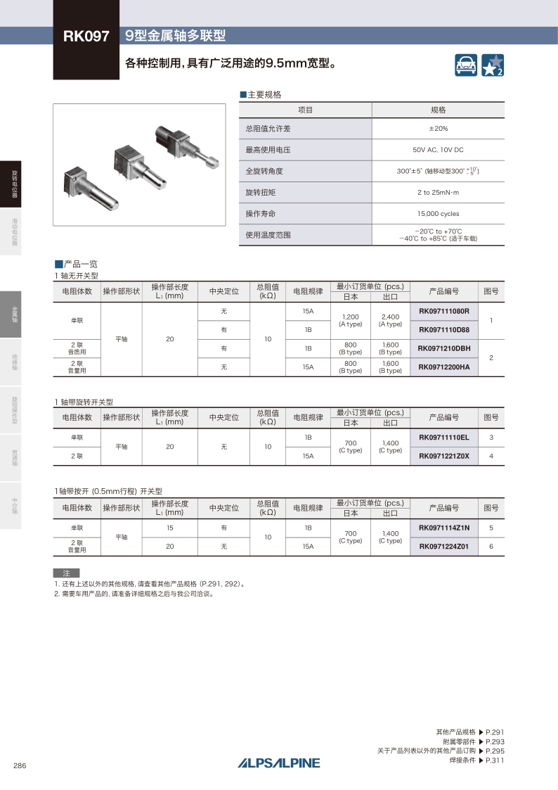 采購(gòu):RK097系列——ALPS金屬軸電位器