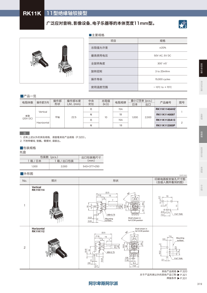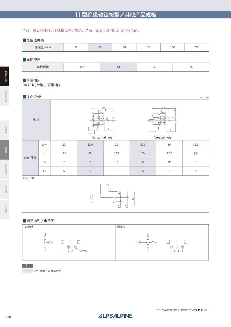 采購(gòu):RK11K系列——ALPS絕緣軸電位器