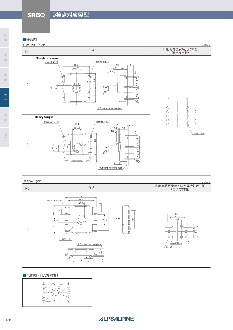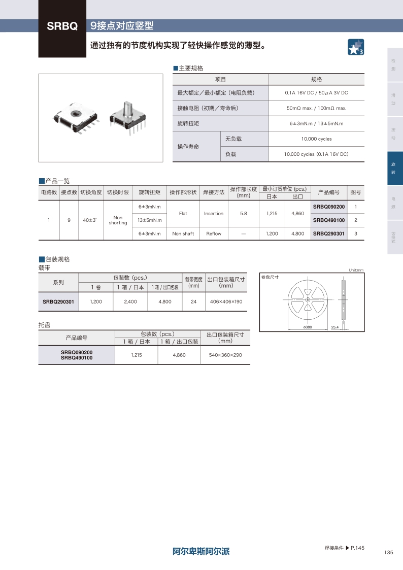 SRBQ290301 照片 1 9 40±3° Non shorting 6±3mN·m Non shaft Reflow - 11.4×12.4×3.1mm