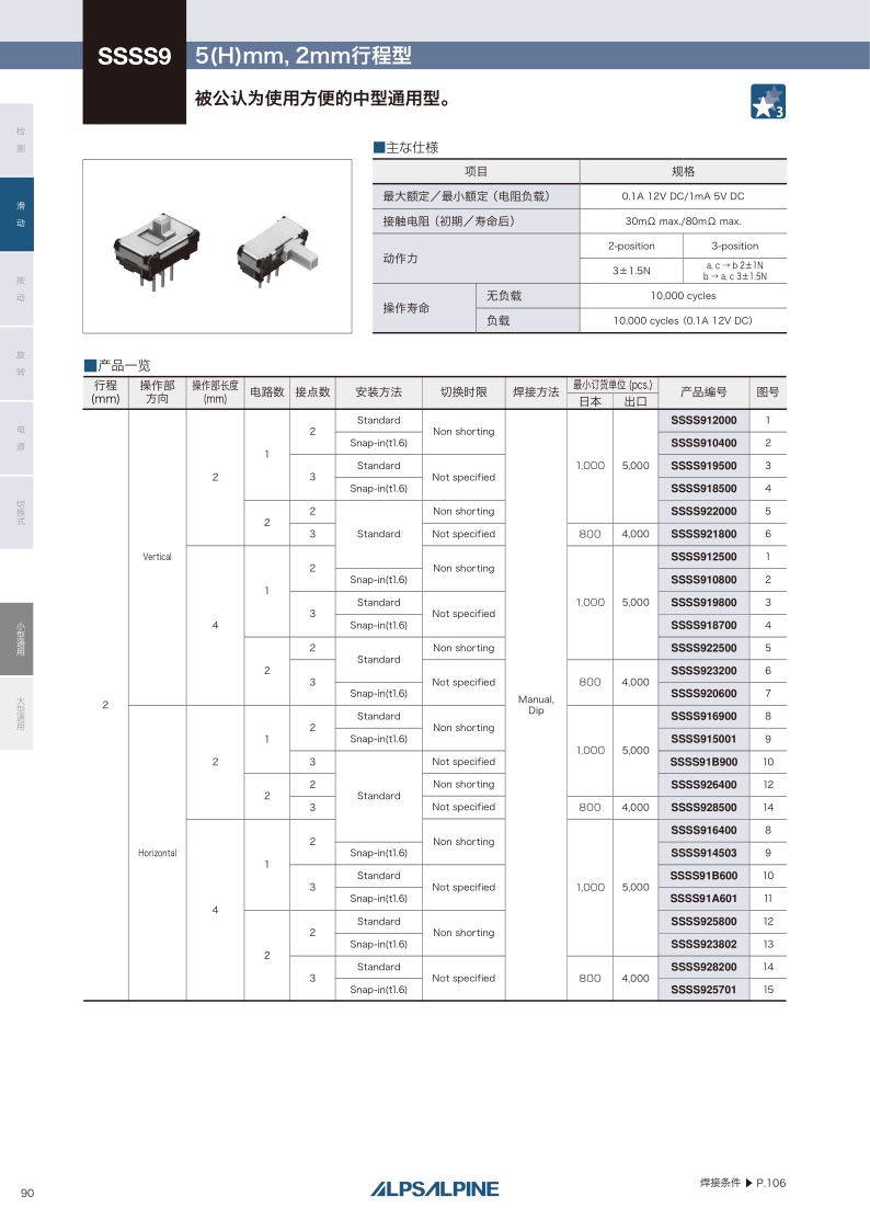 SSSS9系列——ALPS滑動開關(guān)