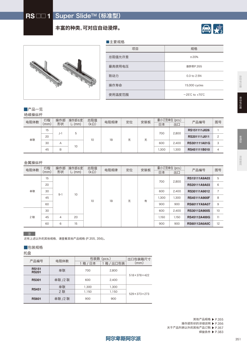 RS301系列可對應自動浸焊。標準 ? 行程:15/20/30/45/60mm ? 電阻體數(shù):單聯(lián),2聯(lián) ? 操作方向:Vertical。