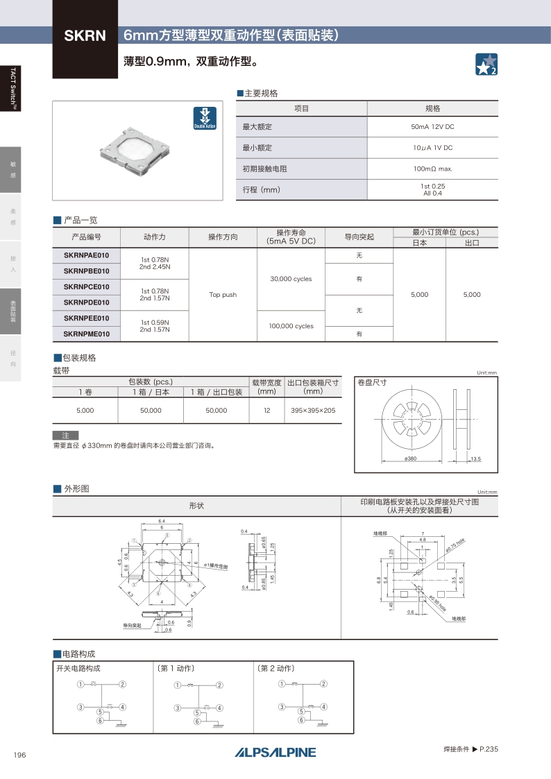 采購(gòu):SKRN系列——ALPS輕觸開關(guān)