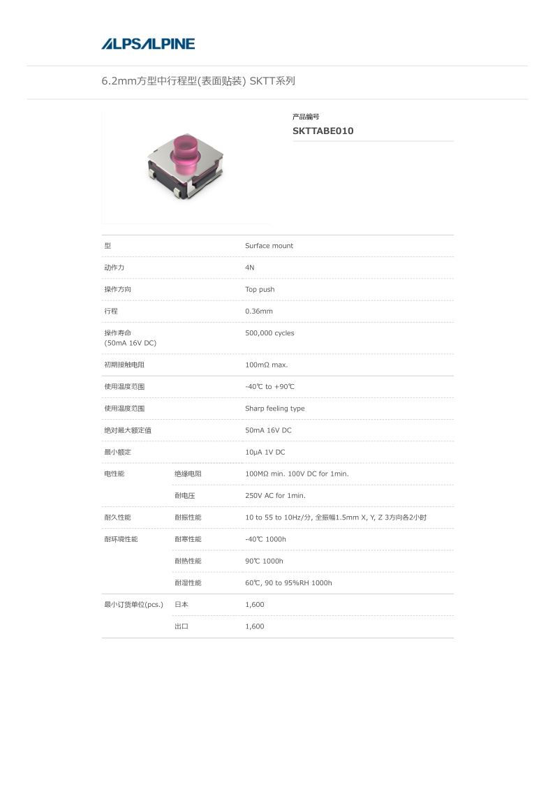 SKTTABE010——ALPS輕觸開關(guān)