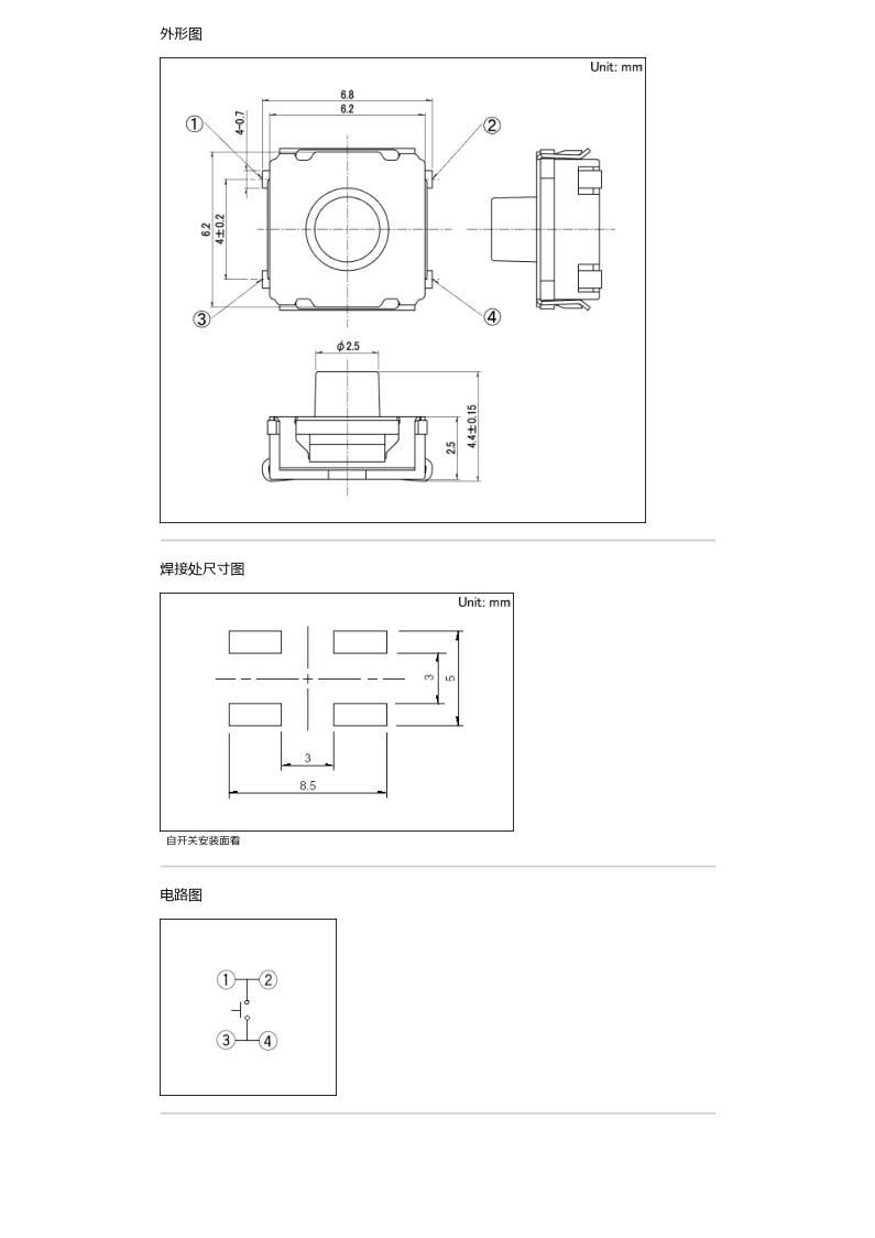 6.2mm方型中行程型(表面貼裝) SKTT系列型號(hào):SKTTABE010