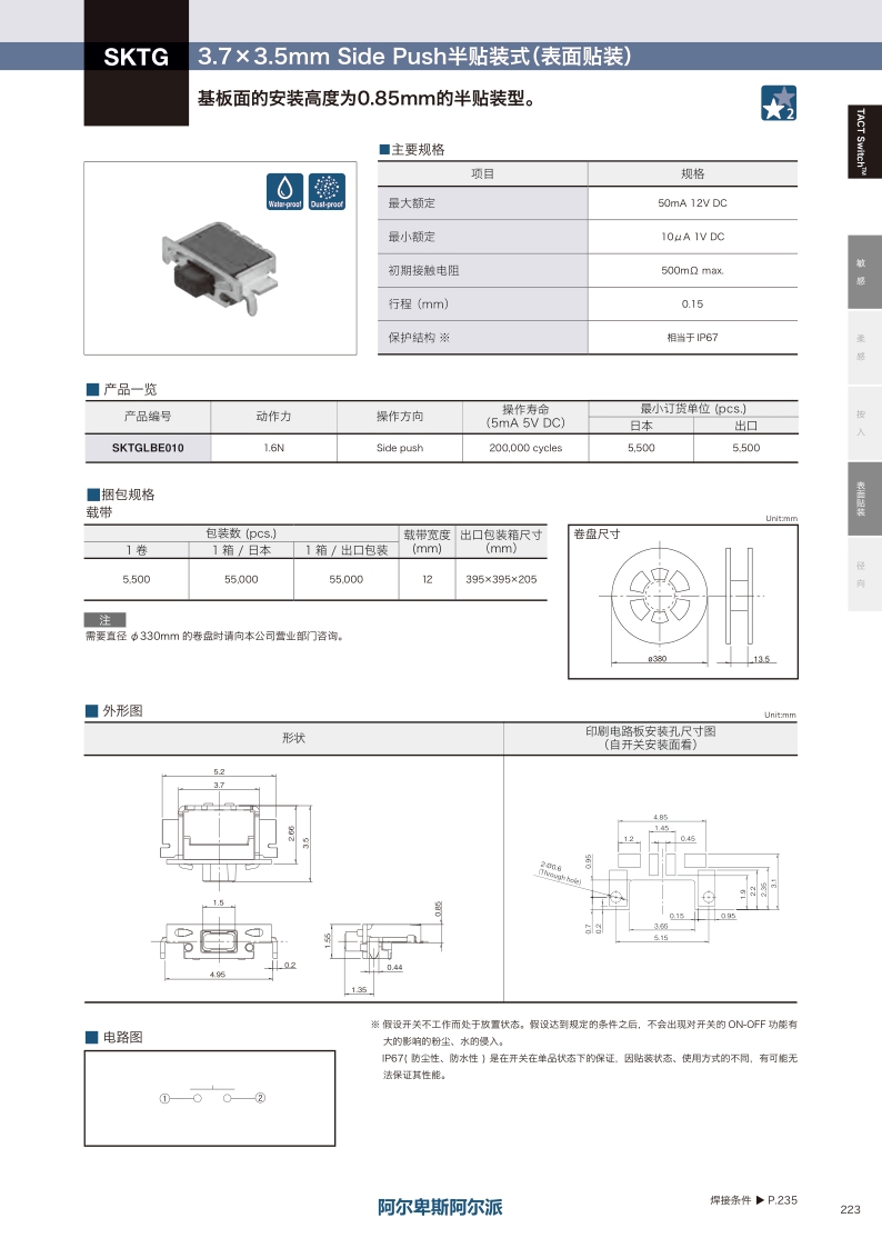 SKTGLBE010——ALPS輕觸開關(guān)