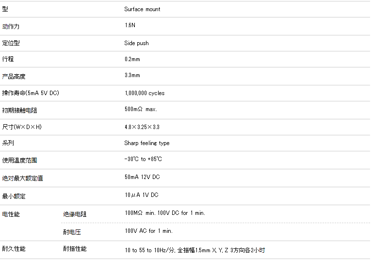 4.8×3.25mm Side Push型(表面貼裝) SKSJ系列型號(hào):SKSJLEE010