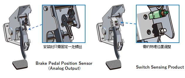 這些新一代汽車采用了將減速時(shí)車輪的旋轉(zhuǎn)力轉(zhuǎn)換為行駛用電能的再生剎車系統(tǒng)。為了有效生成這種再生制動,剎車踏板的踩踏量信息變得非常重要,但是,以往的單輸出型無法同時(shí)輸出剎車燈亮燈用電能,導(dǎo)致整機(jī)廠商在設(shè)計(jì)方面非常不便。