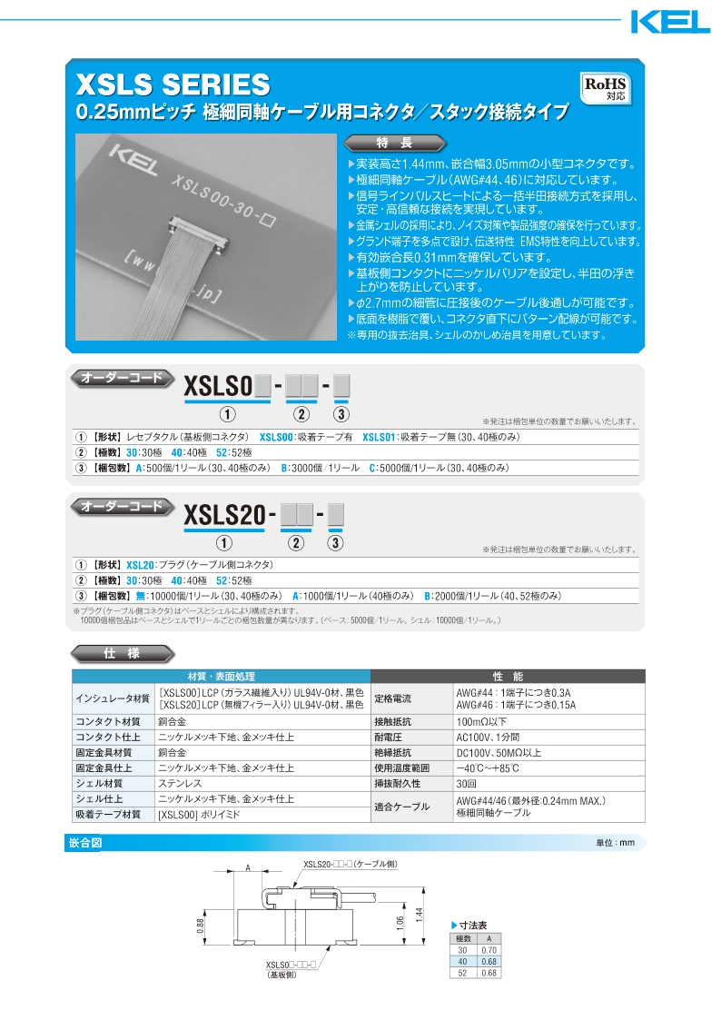 采購(gòu):XSLS系列——KEL極細(xì)同軸電纜連接器